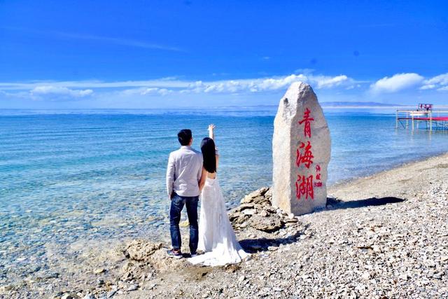 离开这个寺之后我们就继续开始往青海湖前进了,一路上都看到满山都是青草,到处都是牛羊,路边的景色都让人非常的兴奋,看得我真想从车上跳下去拥抱这个大自然行走了一会之后远远的就看到天边出现了镜子一样的湖面,一下车就感受到一阵微凉的风,风里还带着清早和油菜花的味道,以及牛羊便便的味道,真的感觉自己和大自然很亲近了,感受到一种心旷神怡的感觉,一边是看不到边的花海,一边是湛蓝清透的湖水,远远的看过去,青山和白云相伴,格外好看。