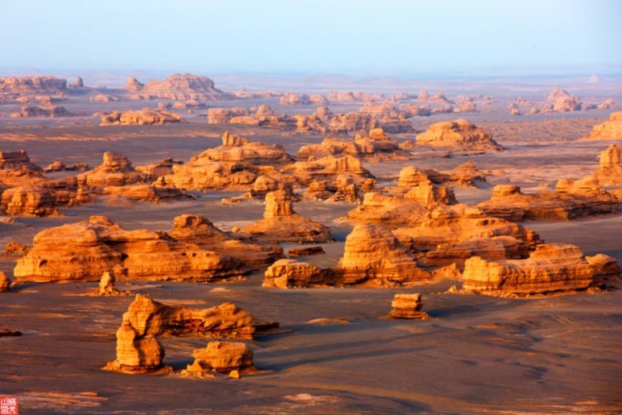 如果你有幸来到这里,不妨徒步穿行其中,疾风呼啸,迷幻之景扑面而来,让人恍惚置身史前,浮想联翩。清晨,进入景区徒步穿行雅丹群,有幸看到大漠戈壁日出,明光烁亮,渐渐染红了整个景区。穿行其中,仿佛进入了沙漠艺术博物馆,雕琢的让人目不暇接,这些大自然的杰作让人惊叹不已,佩服得五体投地。规模宏大的雅丹体如气势磅礴的远航舰队,在浩瀚无垠的漠海上劈波斩浪,蔚为壮观,实属罕见。置身这座规模宏大的"魔鬼城"中,一种震撼人心的力量,天那么高,地那么辽阔,这种神奇的感受令人难以言说......