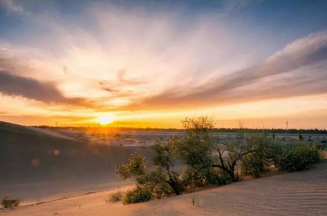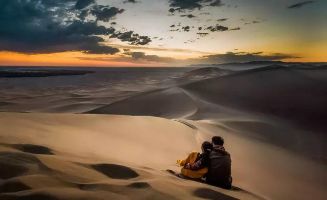 背倚鸣沙山,在黄昏时分,看大西北的天空中勾留的晚霞。