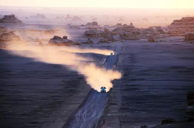 在雅丹地貌上飞驰,有种震撼人心的力量,天很高,地也仿佛看不到边际,太阳一寸一寸的坠入这片土地上。