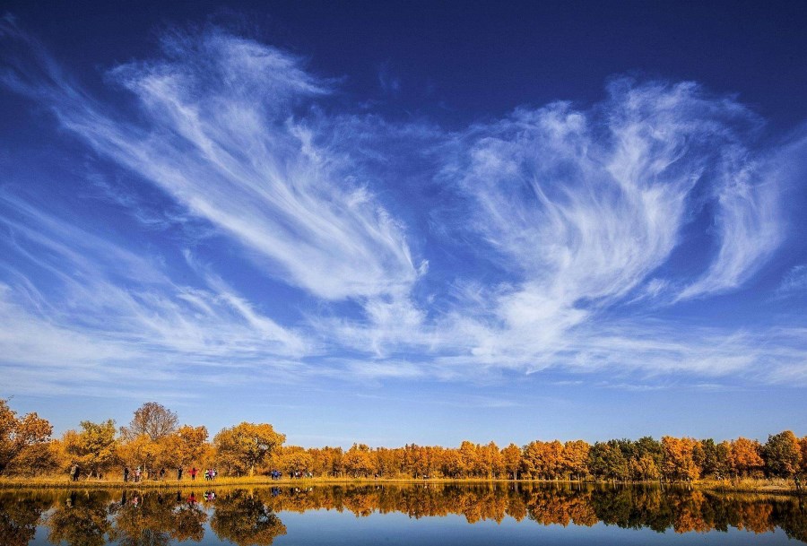 金塔胡杨林,如果说额济纳胡杨林是汉子般粗狂野性的美,那金塔胡杨林变更像一位翩然少女,多了一丝柔美。阳光下金色的树叶映衬着湛蓝的天空于风中婆娑起舞,鲜明的影调,亮丽的色彩,随手一拍,都美得让人窒息。
