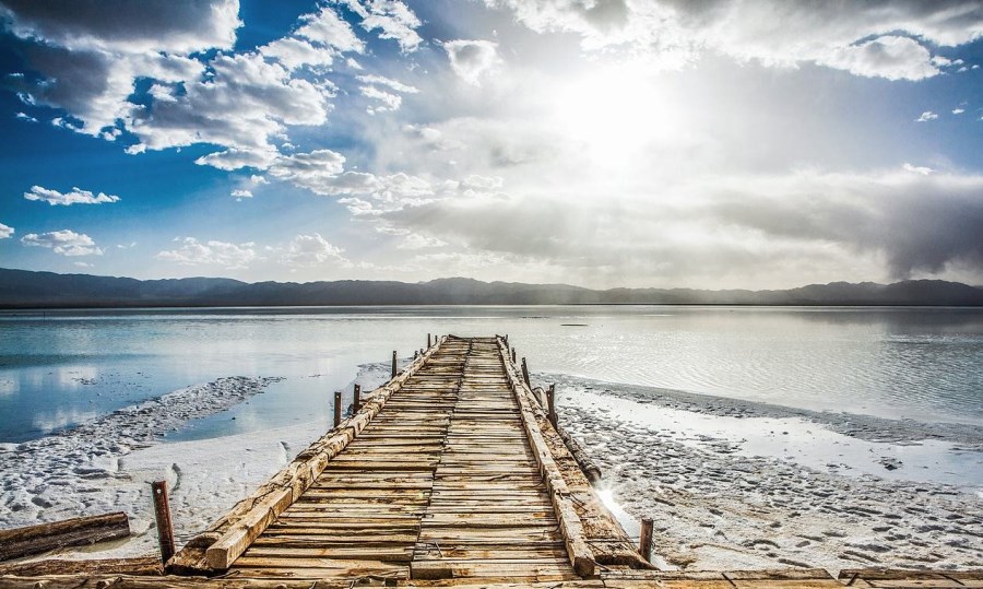 茶卡盐湖被称为中国的“天空之境”,湖水由于含盐量极高,形成了固液并存的形态,因此也具有了极强的反射能力!在这里我们还能看到两座常年积雪的山峰,他们分别属于祁连山和昆仑山的支脉,它们的倒影映射在湖中,形成“湖水与长天一色,盐湖与雪峰同辉”壮美的青藏高原独特自然风光。