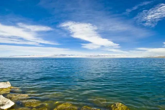 一望无际的湖面上碧波连天,雪山倒映,鱼群欢跃,万鸟翱翔周围是茫茫草原,湖滨地势开阔平坦,水源充足,气候温和,是水草肥美的天然牧场。