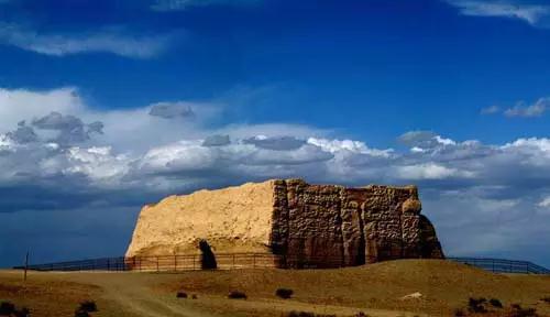 现在的汉玉门关遗迹,是一座四方形小城堡,耸立在东西走向戈壁滩狭长地带中的砂石岗上,登上古关,举目远眺,四周沼泽遍布,沟壑纵横,长城蜿蜒。