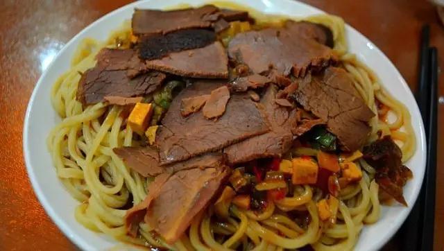 敦煌人说“天上的龙肉,地上的驴肉”。驴肉黄面,可是离开敦煌就找不到的美味!黄面色泽明黄,很细,吃起来柔韧筋道;驴肉切成肉末浇在面上,味道很不错;香菇末和肉丁调汤,香味溢口。