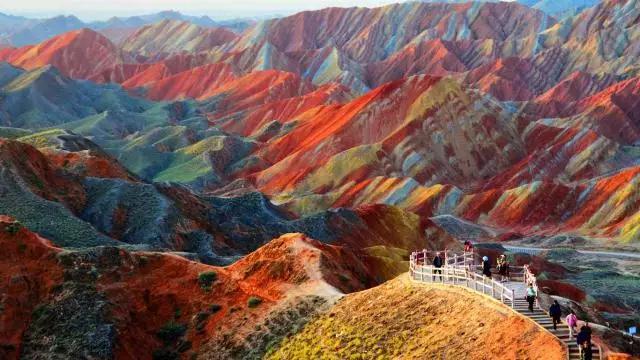 七彩丹霞就得有太阳的时候看颜色才会鲜艳,在阳光的照射下非常漂亮,地貌造型丰富,色彩艳丽,在阳光的照射下十分壮观。
