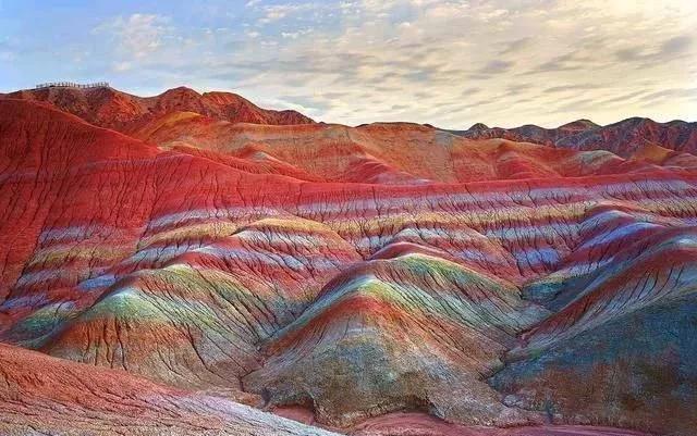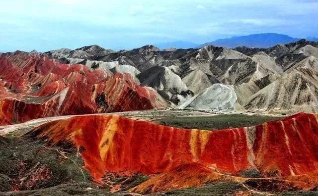 当然每个由大自然的鬼斧神工创造出来的景色,背后都一个美丽的传说。七彩丹霞也不例外,相传女娲补天的最后一块五彩石被妖魇窫窳碾成粉末吹落人间,幻化成了一座七彩神山,这座山斑斓无比,尤其在晨曦幕辉的光影流动间,犹如仙境,美的让人惊心动魄。然而很久以来却并没有人清楚的知道,这座山到底在哪里,直到多年前,一位摄影爱好家无意中拍到的一张彩山照片,被刊登在了各地报刊,很多人认为它和传说中描述的神山非常相似,照片里的山体沟壑纵横、色彩斑斓、气势雄浑,后来经过各方人士的研究与考证,这座山才被世人熟知,并且有了一个年轻的名字--丹霞地貌。神话传说为张掖七彩丹霞覆盖了一层浪漫的薄纱,但是它的形成远没有故事中那么旖旎,它是大自然鬼斧神工的杰作。当地少数民族把这种奇特的山景称为“阿兰拉格达”,意思是红色的山。
